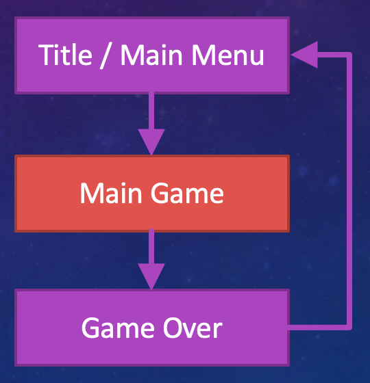 A Phaser App (and quite often games in other engines, like Unity3D) are made up of a number of scene. Each scene is almost like a self-contained ‘mini-app’ which runs within your game.
